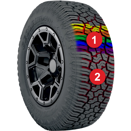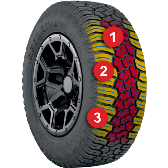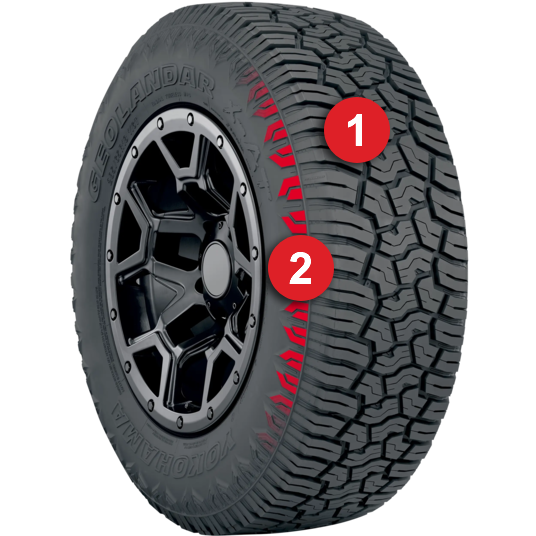 From peak to pavement, the all-new GEOLANDAR X-AT delivers ultimate off-road performance without sacrificing on-road comfort. And with a 70,000 kilometers Limited Treadwear Warranty, quieter ride and unique dual sidewall design, the GEOLANDAR X-AT lets your customers focus on what’s important— the journey.
